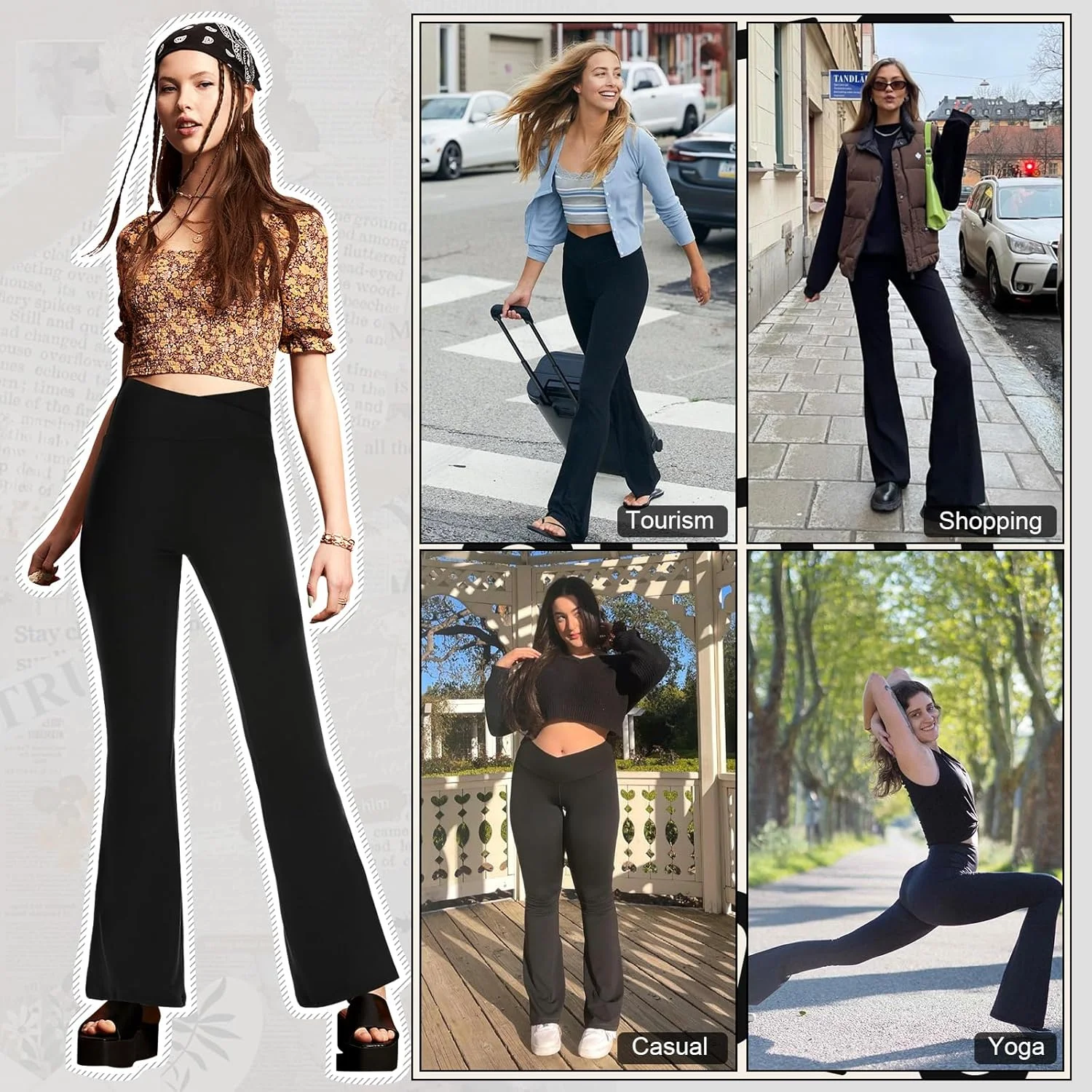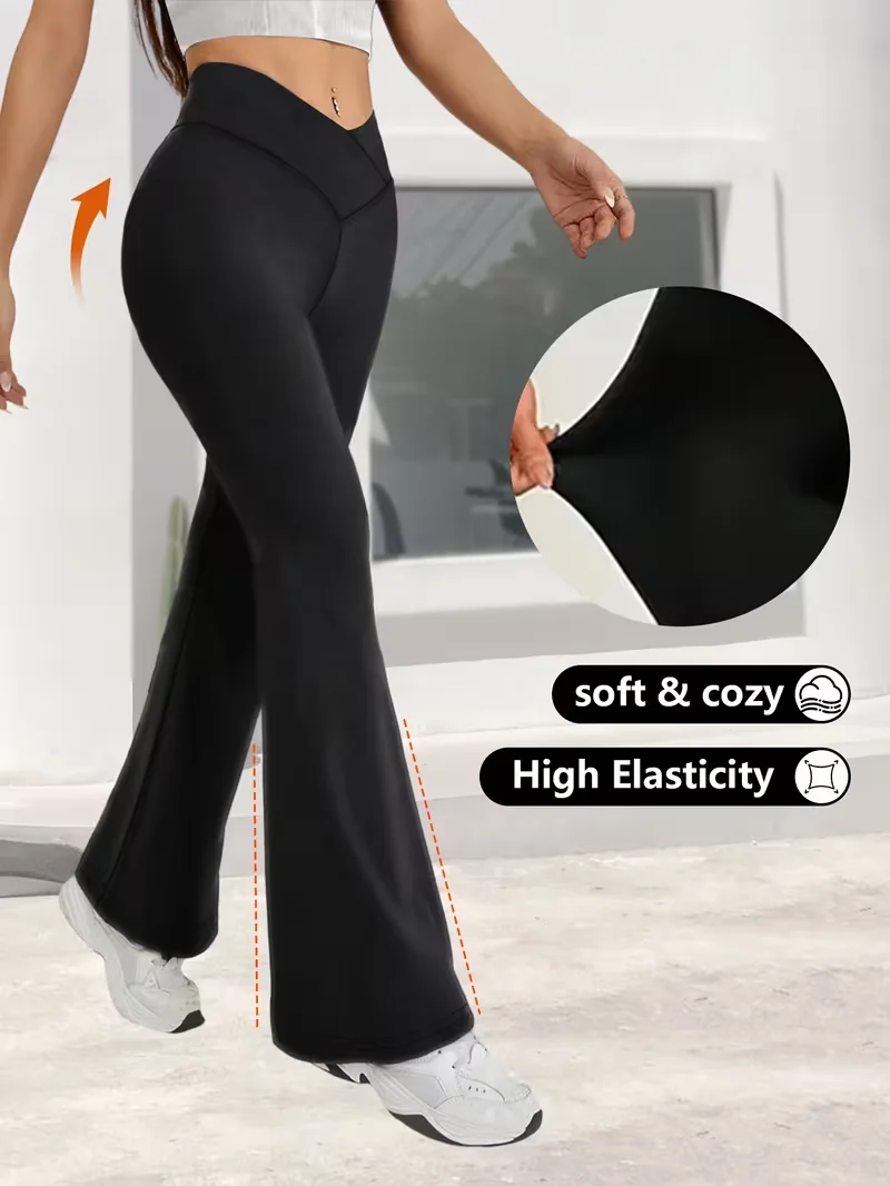 Women's High-Waisted Flare Pants - Cross-Waist Elastic Design, Versatile Long Slim Wide-Leg Trousers,Plus Size Clothes,Jeans(New