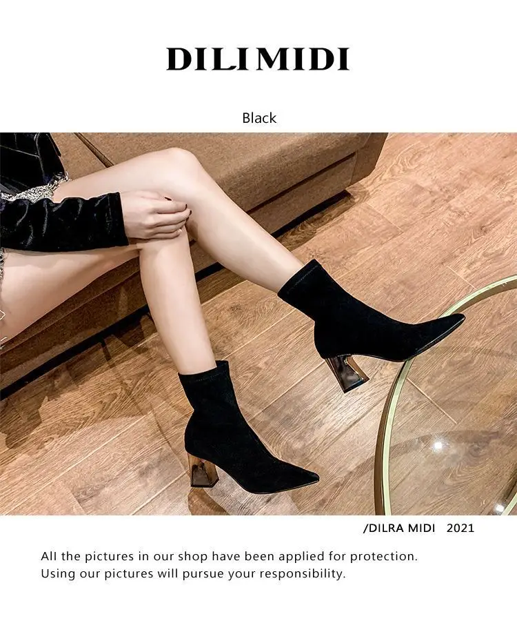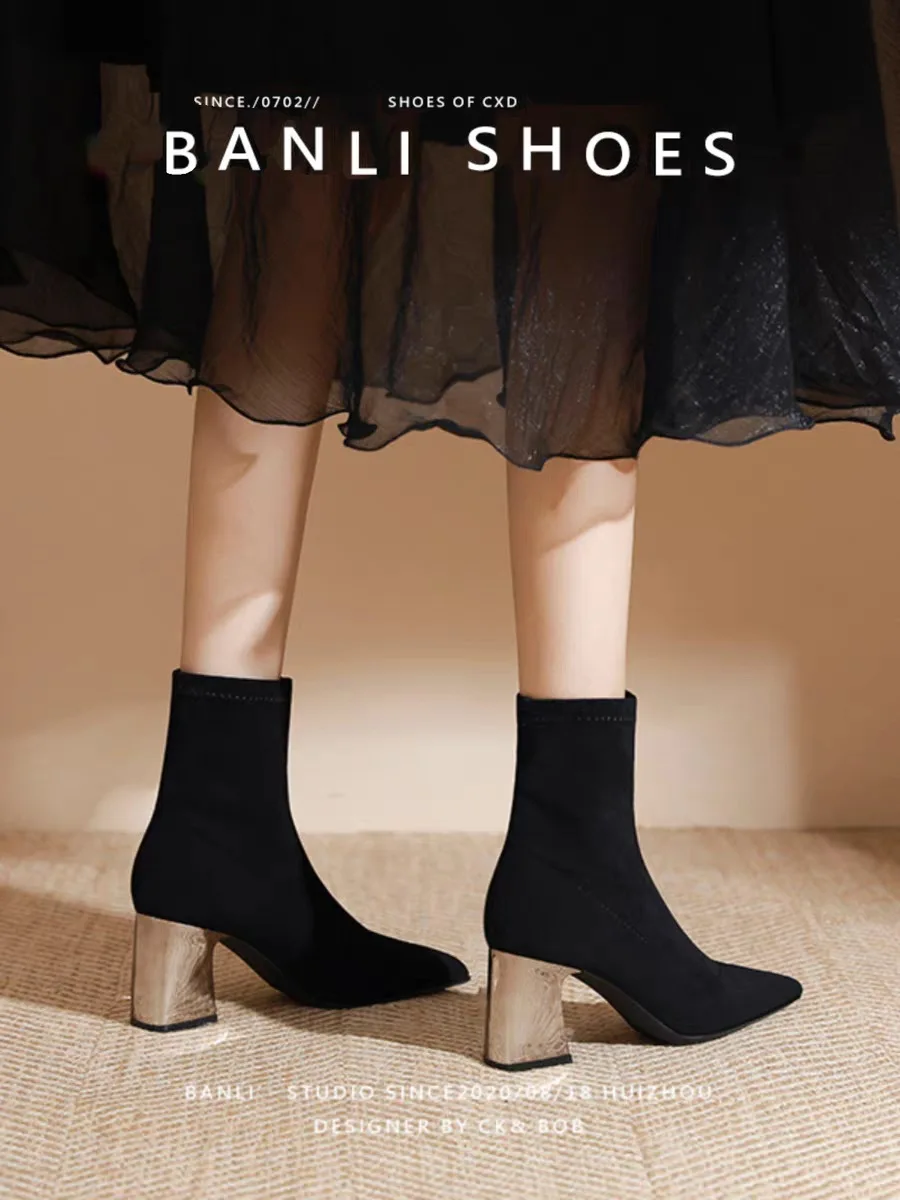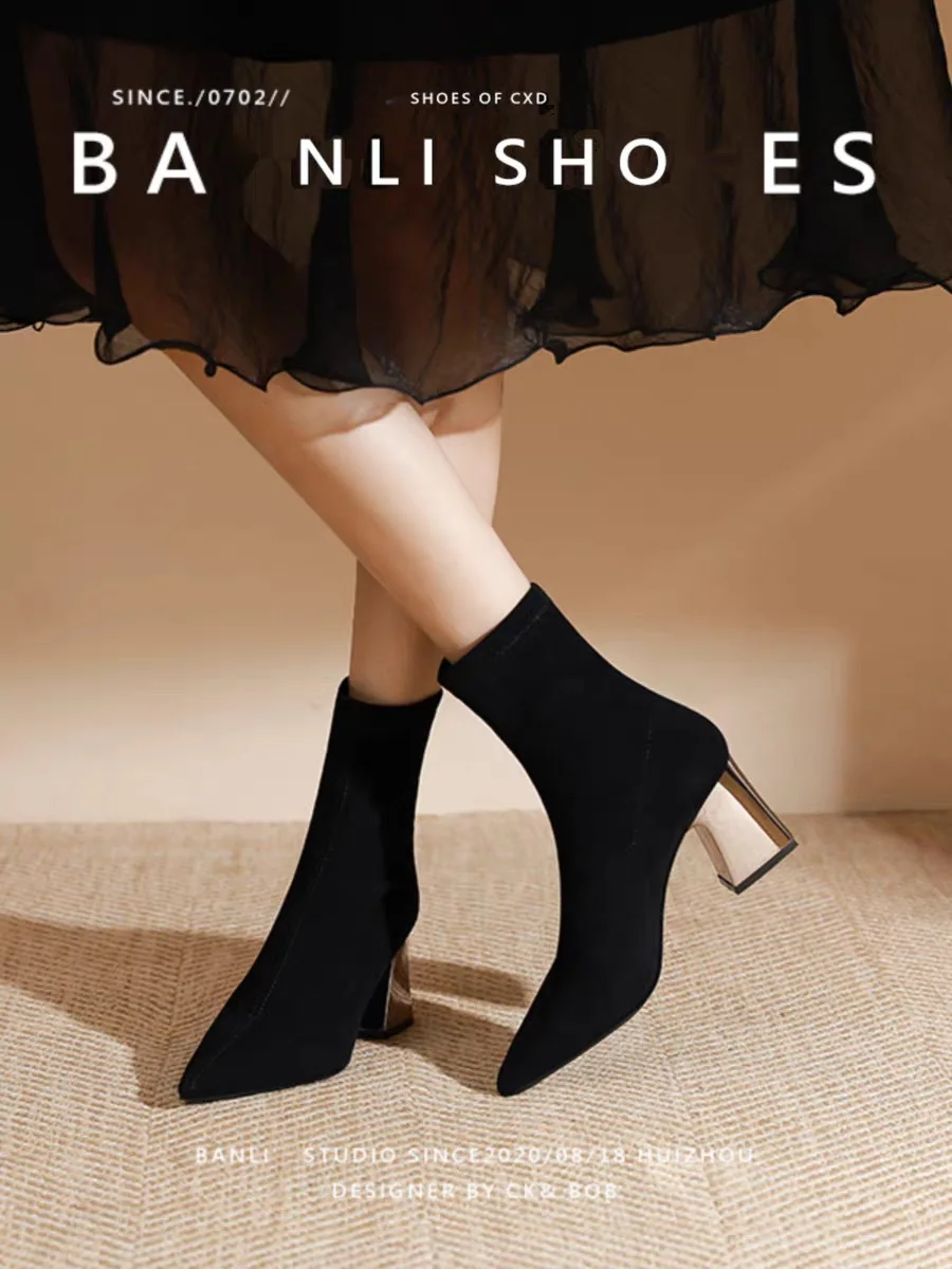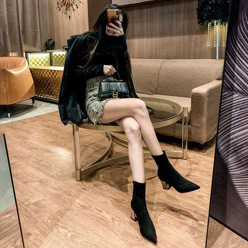 Womens Sexy Boots Suede Women'S Thick Heels And Pointed Black High Heels Versatile And Elegant Boots Zapatos De Mujer Ofertas