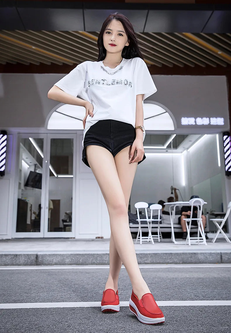 Women's Shoes Spring Genuine Leather Soft Outsole Work Shoes Female Black Swing Shoes Woman Plus Size Wedges Single Shoes