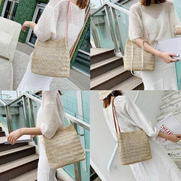Women's straw woven handbag large rattan basket beach Bag Summer Women Messenger Crossbody Bags Girls Small Beach Handbag New