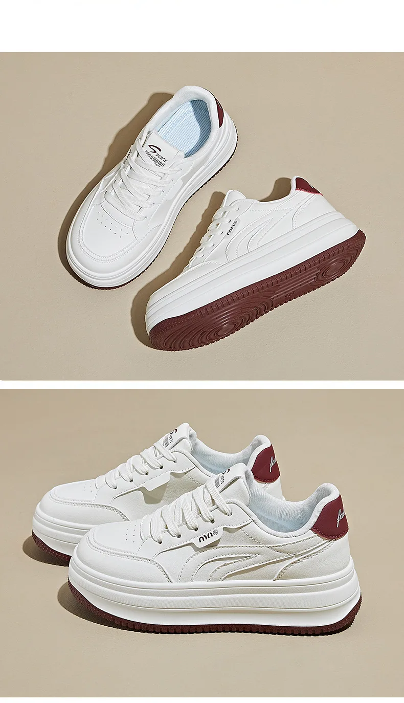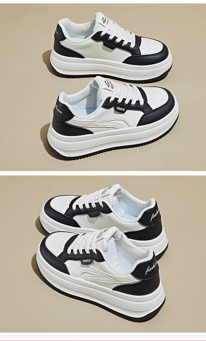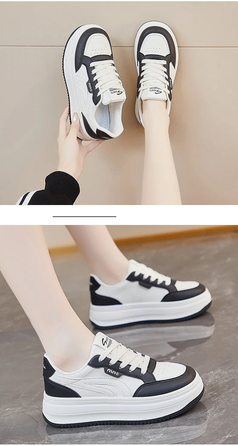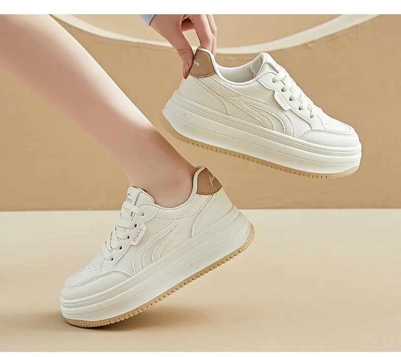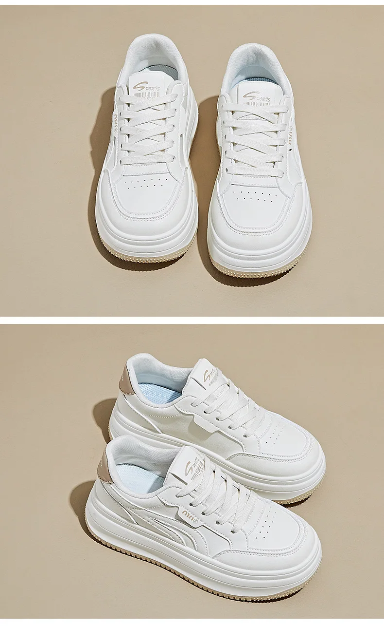 Women's White Shoes2025Autumn New Thick-Soled Platform Shoes Leather Surface All-Season Casual Sports Shoes for Women