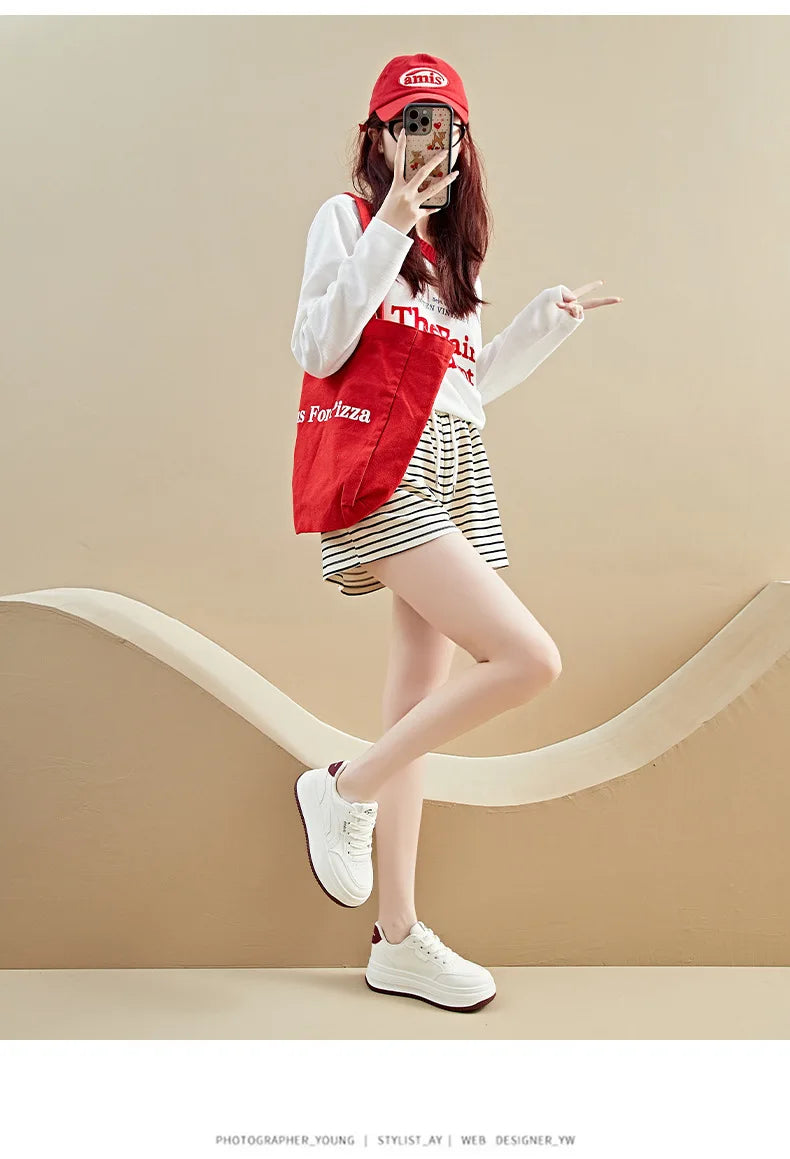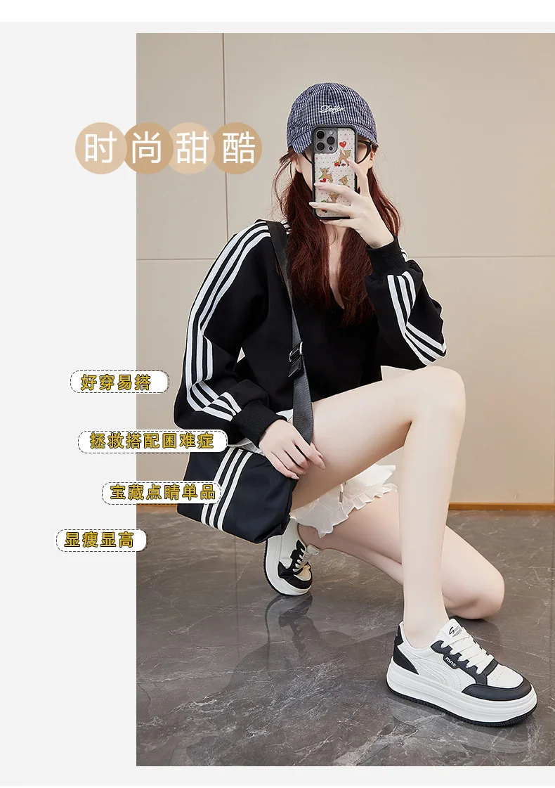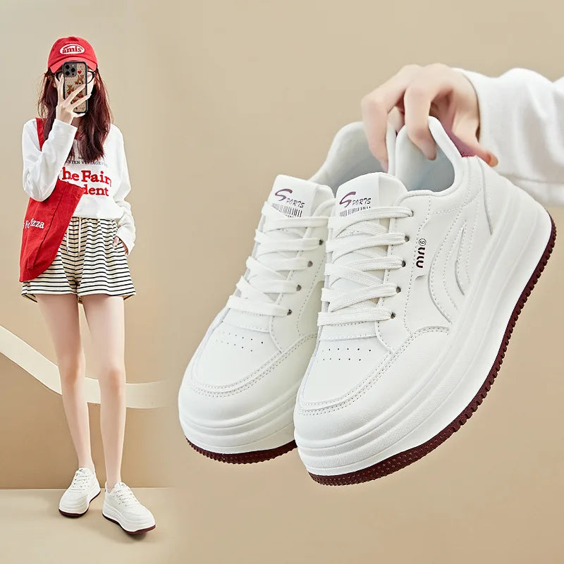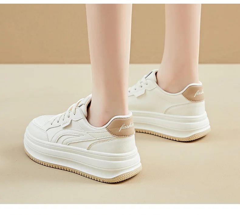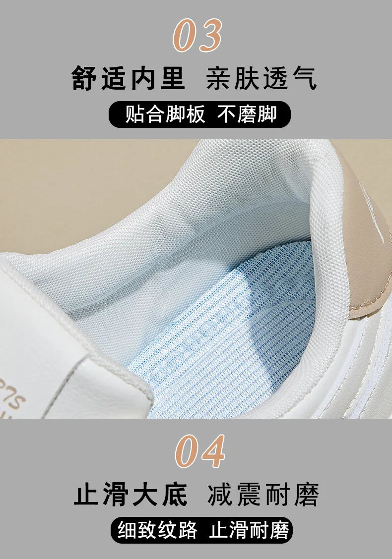 Women's White Shoes2025Autumn New Thick-Soled Platform Shoes Leather Surface All-Season Casual Sports Shoes for Women
