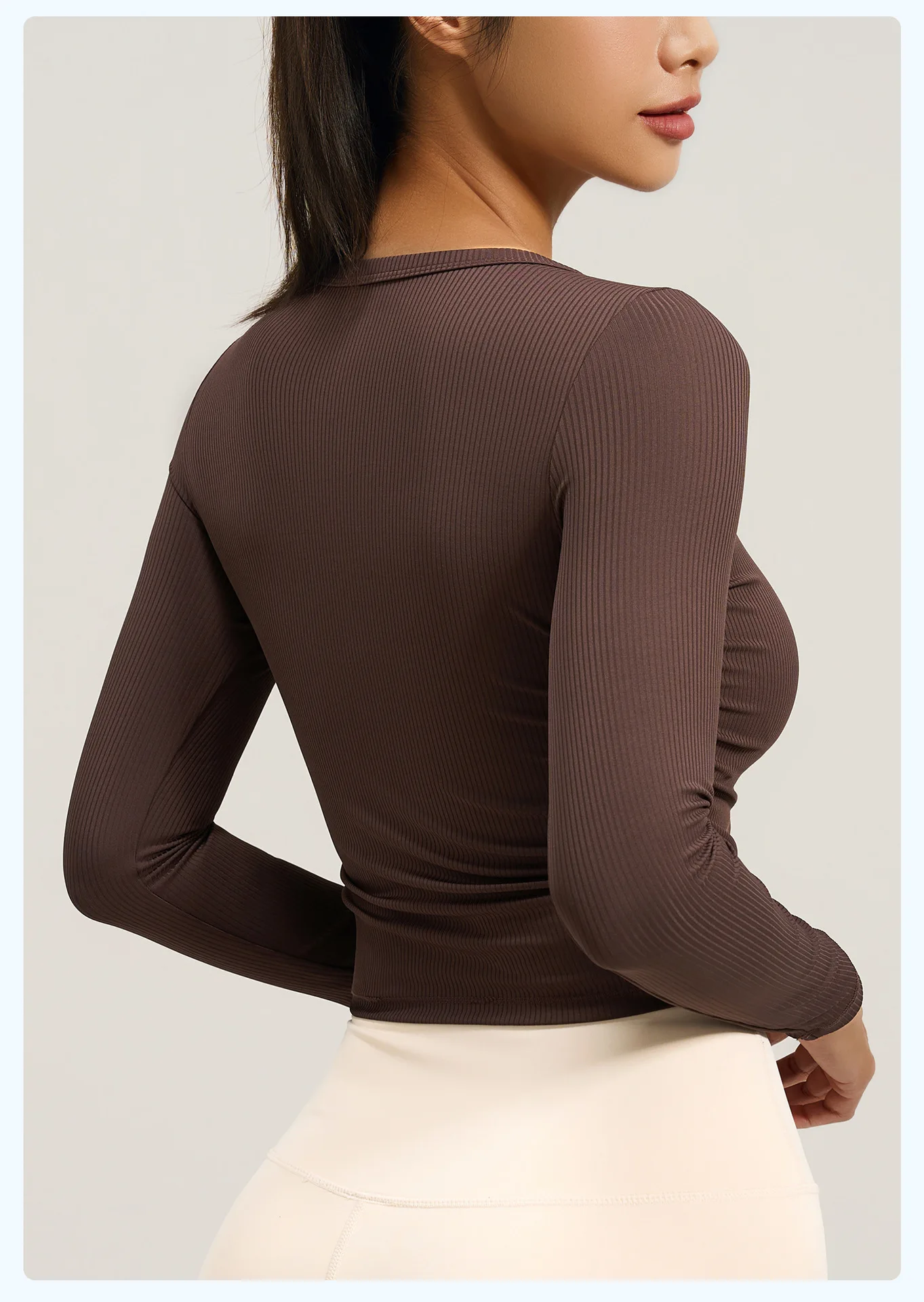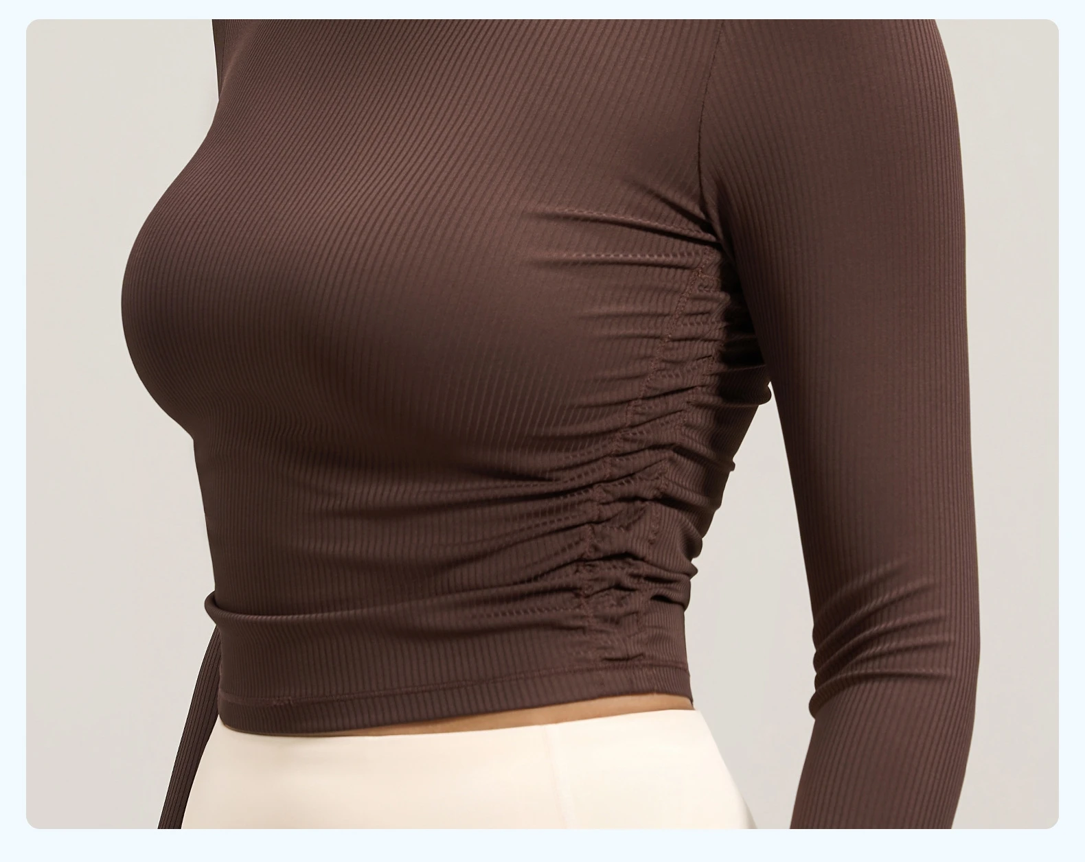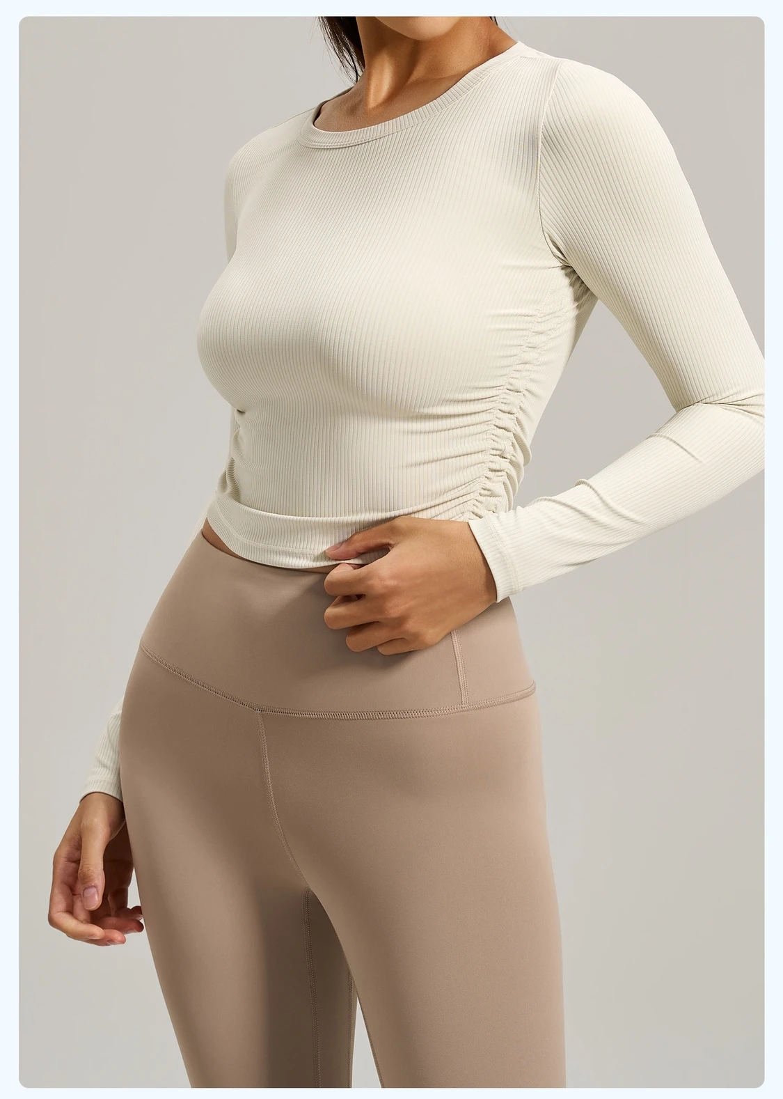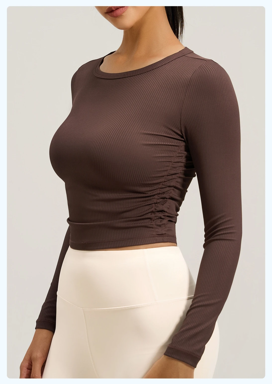 Yoga Top Women Pleated Gym Sports Shirts Breathable Slim Long Sleeve Yoga Wear Pilates Shirt High Elastic Workout Fitness Top